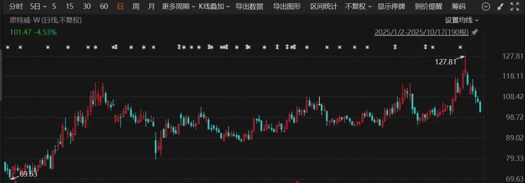 从二级市场看,今年以来,思特威股价呈现震荡上行态势,不过近期有所回调,截至10月17日最新报收101.47元/股,年内累计涨幅超过30%。